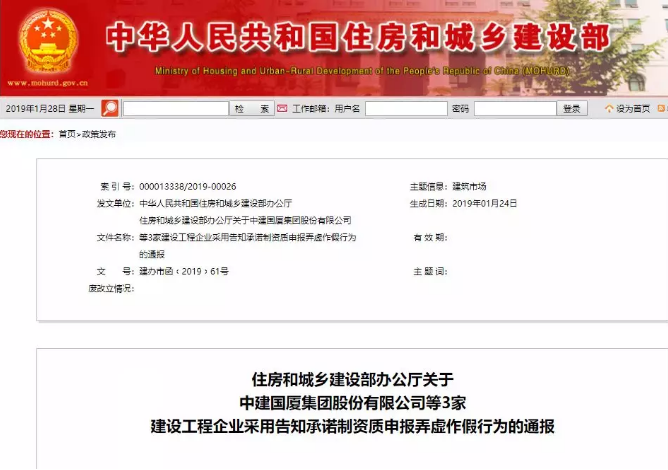 近日,住建部連發(fā)兩份通知,共20家企業(yè)涉及資質(zhì)申報弄虛作假被通報: